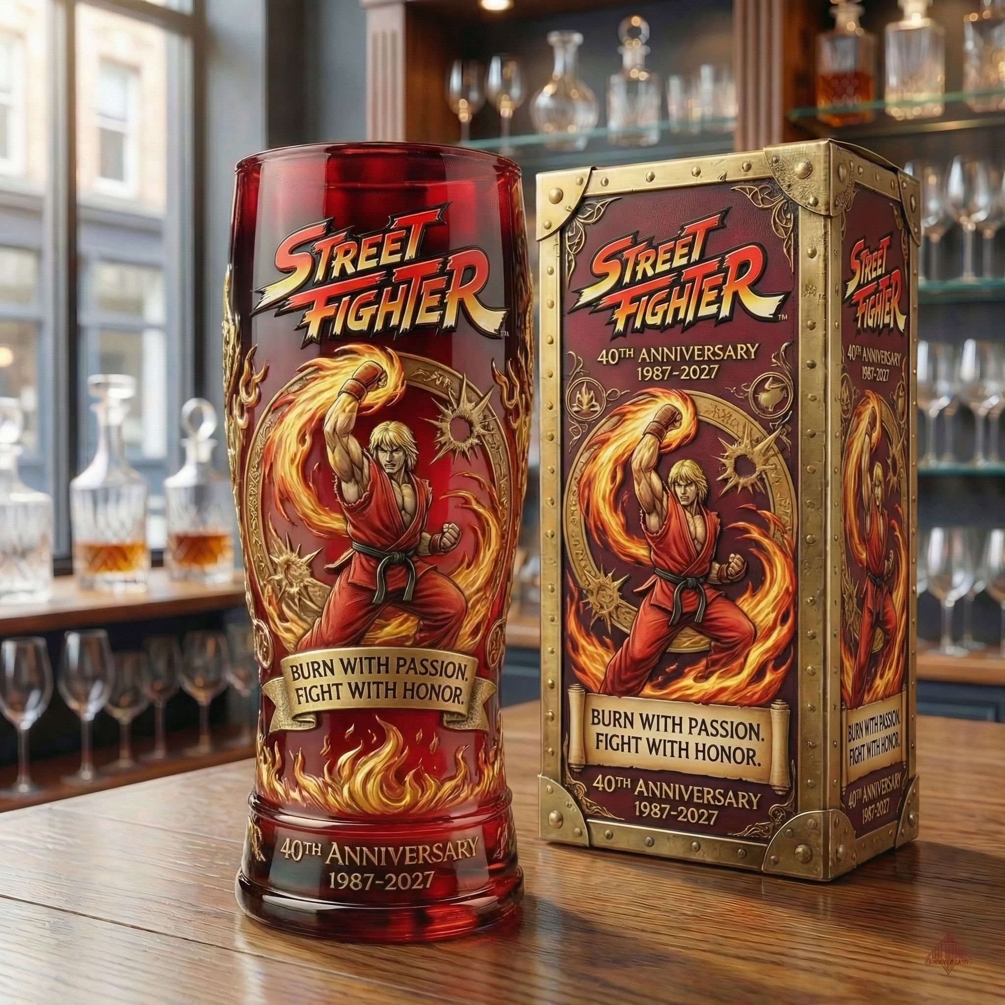 2027 markiert 40 Jahre, seit Arcade-Legenden eine Generation definiert haben. Gefertigt, um die Schlachten, die Rivalitäten und die Kämpfer zu ehren. „ Wähle deinen Kämpfer. Fordern Sie Ihr Erbe an. “Ryu · Ken · Chun-Li · Guile · Bison · Blanka. Jedes Glas repräsentiert einen anderen Weg, eine andere Kraft.