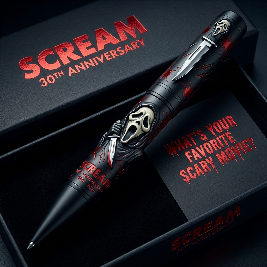 🩸Dies ist nicht nur ein Stift-es ist ein in der Zeit gefrorener Schrei. Der Scream 30th Anniversary Comme morative Pen ist ein funktionales Sammlerstück für diejenigen, die sich noch an das erste Mal erinnern, als das Telefon klingelte… und alles änderte sich.