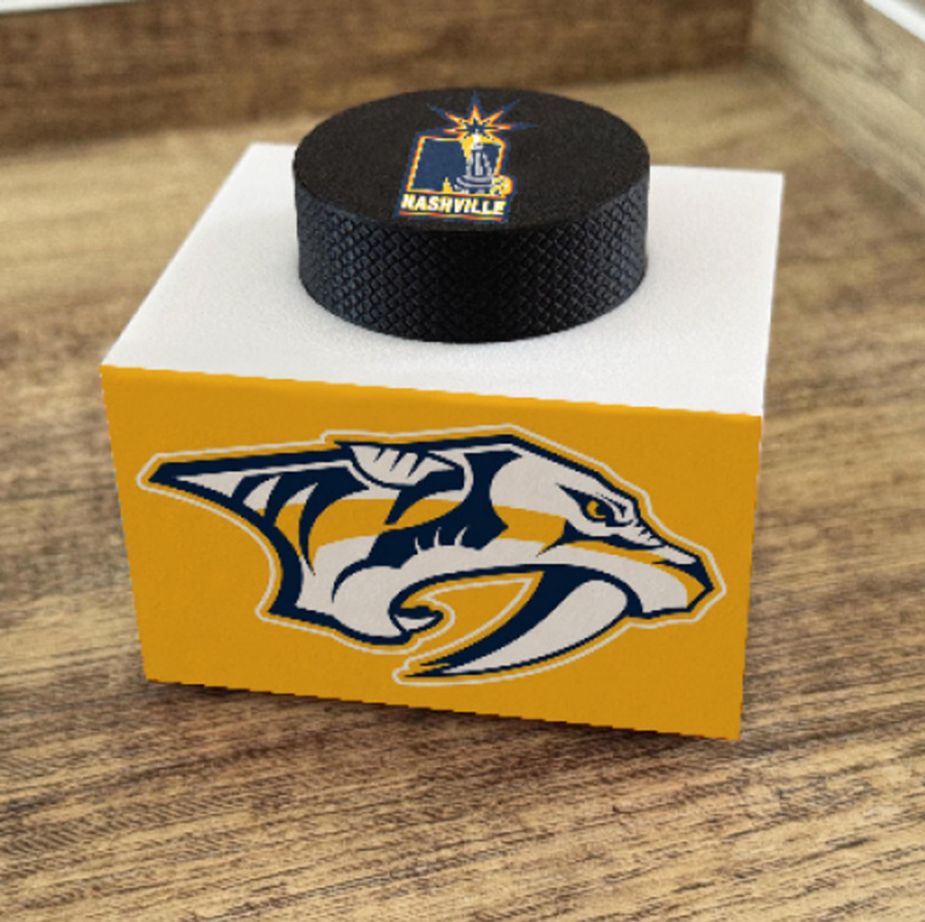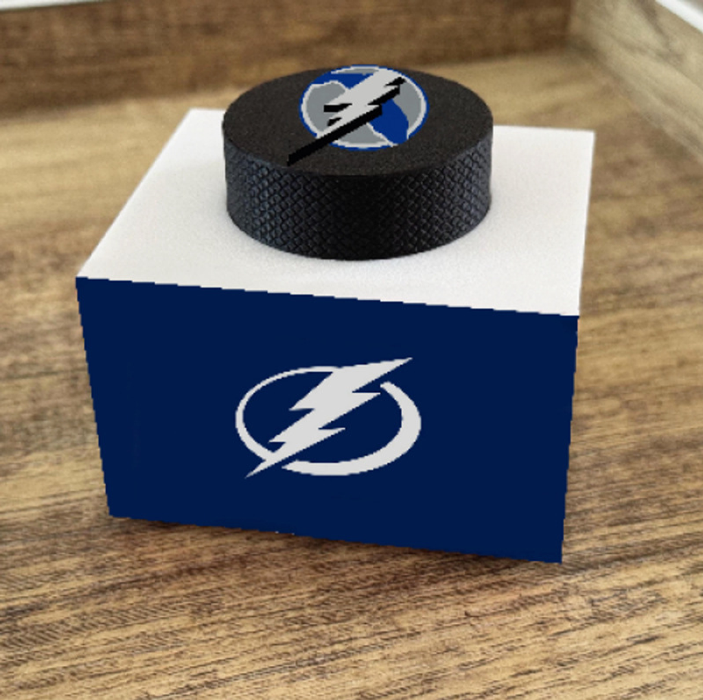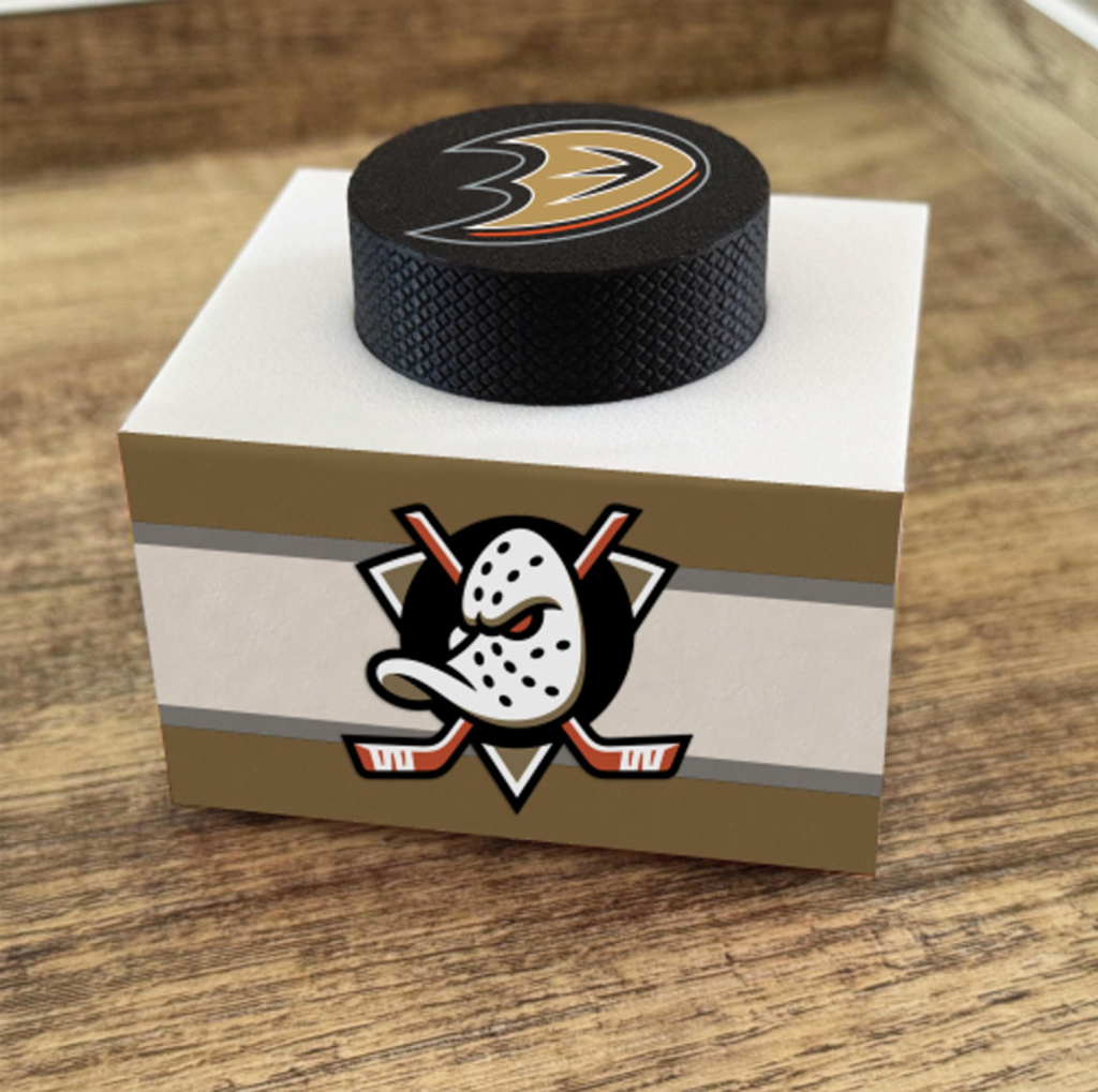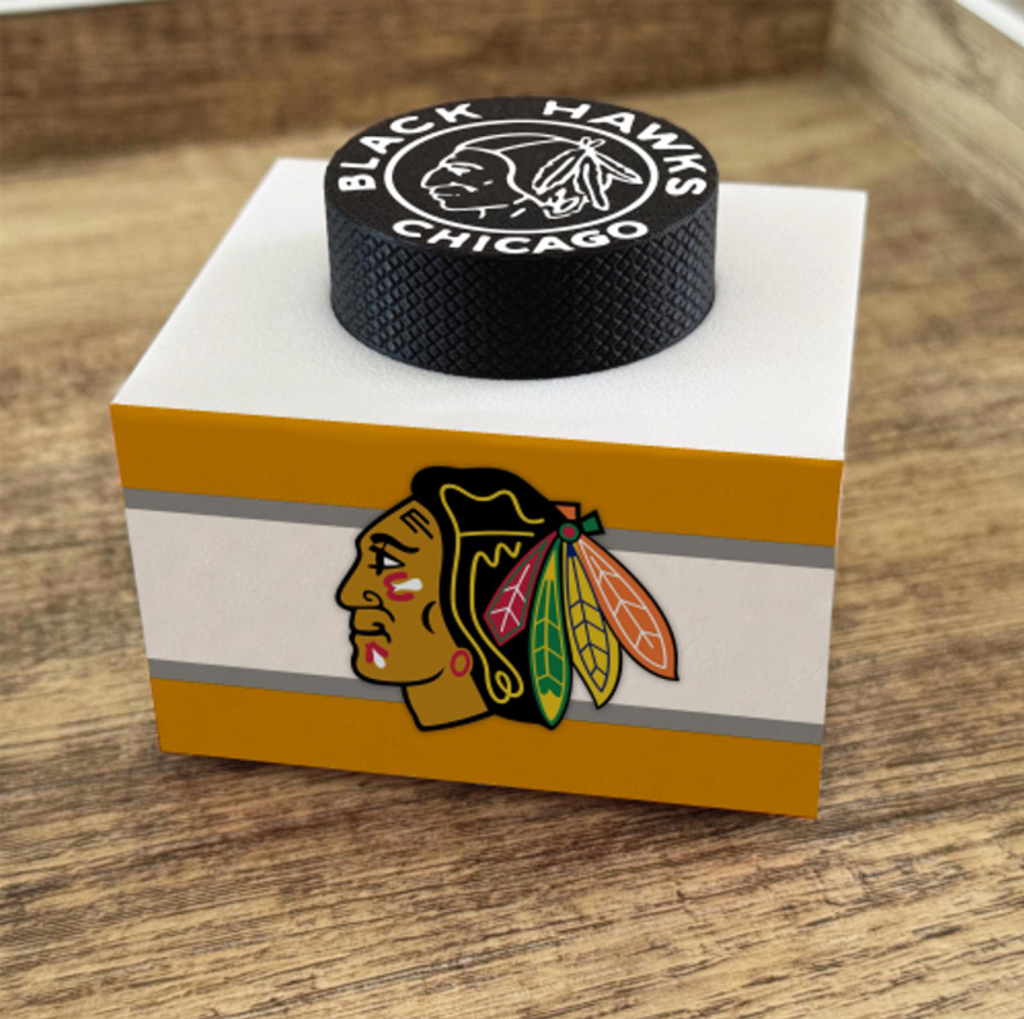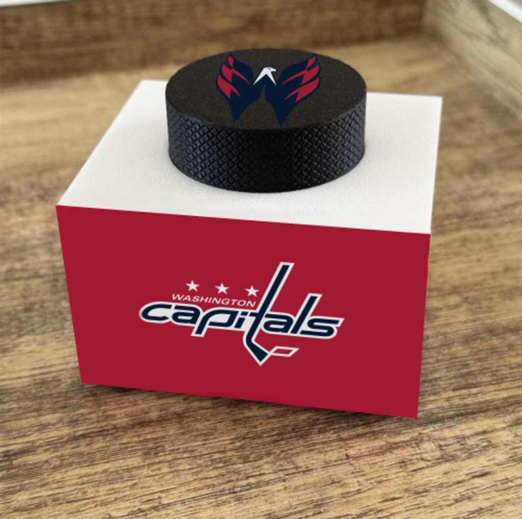With the hockey puck shaped button, it also looks awesome along side your other team collectibles!