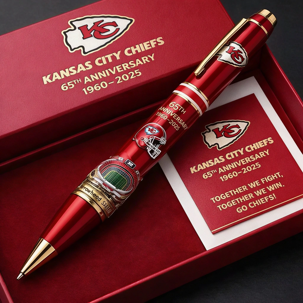 Ehren Sie das Erbe der Kansas City Chiefs mit diesem Gedenk stift zum 65. Jahrestag, der für echte Fans gedacht ist, die Wert auf Geschichte, Stolz und Exzellenz legen. Dieser elegante Stift ist mehr als ein Schreib werkzeug-er ist eine Hommage an Jahrzehnte unvergesslicher Momente und Meisterschaft geist.