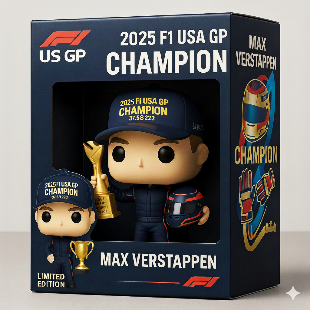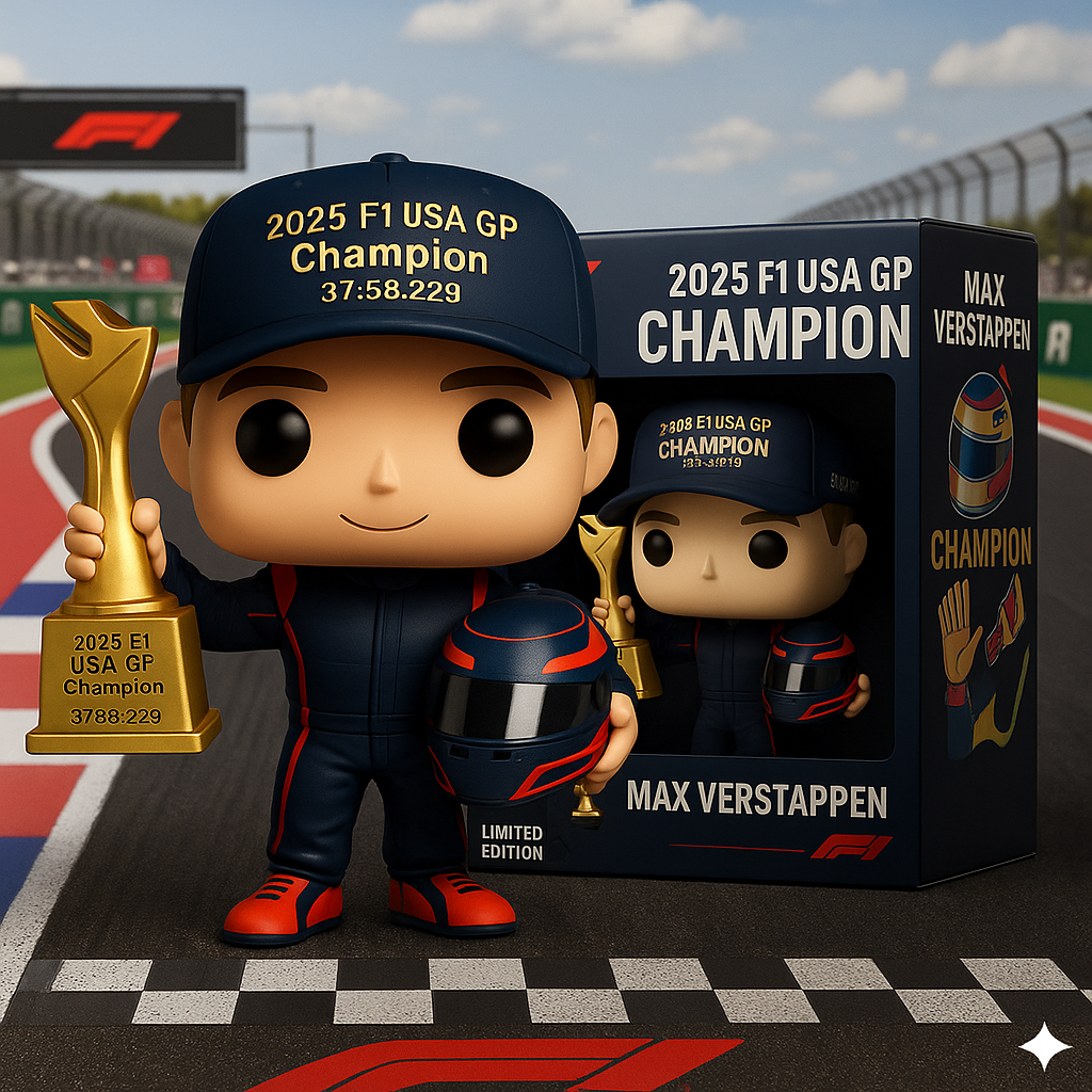 🏆🏎Diese exquisite Funko Pop! Die Max Verstappen-Puppe wurde entworfen, um an seinen glorreichen Sieg beim US F1 Grand Prix 2025 zu erinnern. Mit seiner aufregenden Siegestrophäe hält diese Puppe in limitierter Auflage den Moment des Sieges auf der F1-Strecke für immer fest!