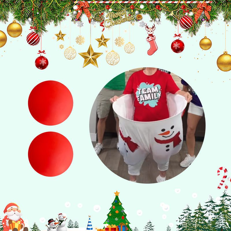 Die festliche rote Hose und die leuchtenden, leichten Schaumstoffbälle sorgen sofort für Weihnachtsstimmung (und urkomische Fotos).